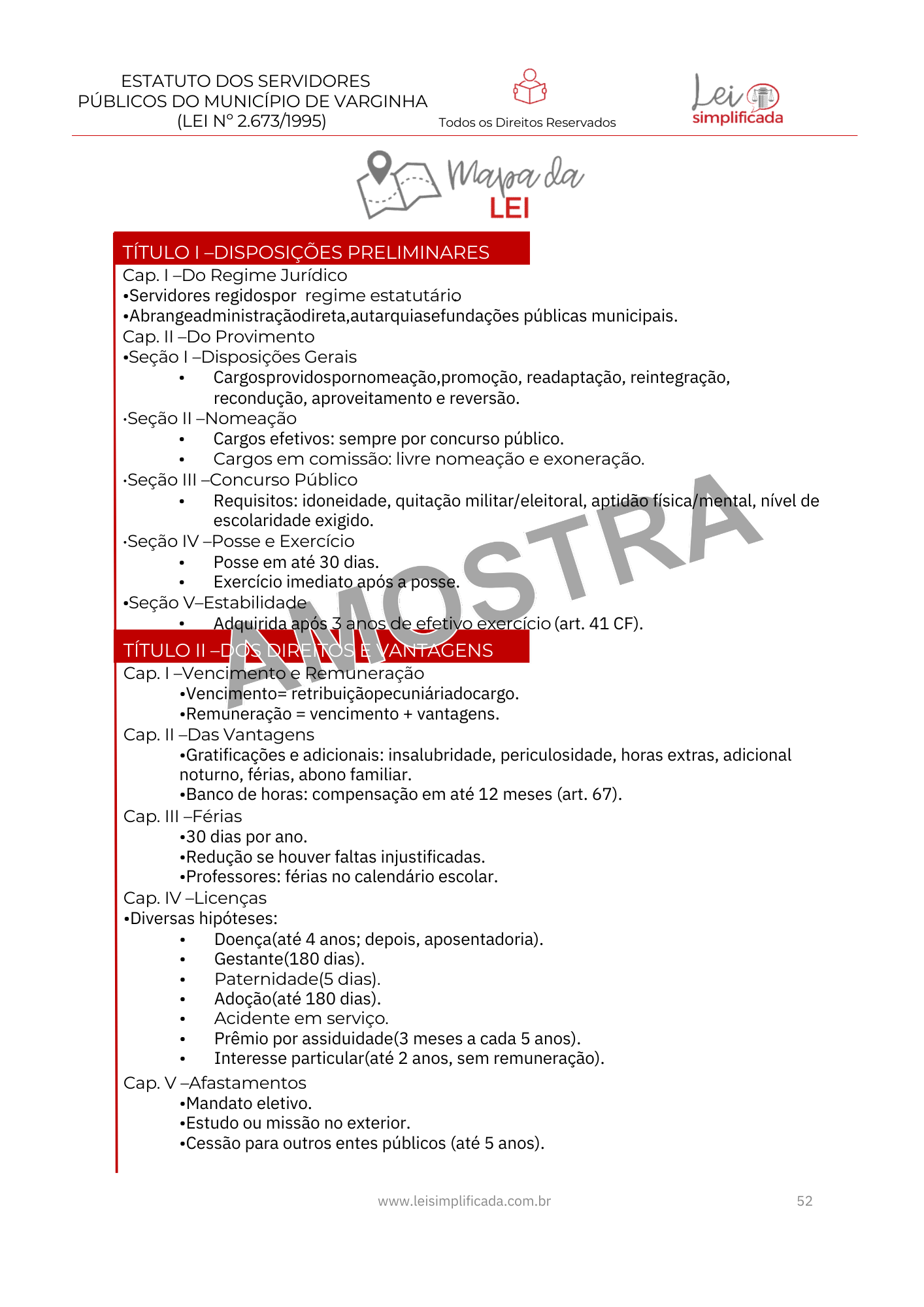 É um resumo com os principais pontos da Legislação, ideal para facilitar a memorização e revisão da lei.